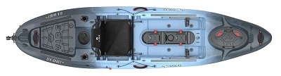 This kayak is rigged up and is ready to fish! Equipped with a comfortable raised Hero 2.0 seat that offers 2 height setting and backrest tilt adjustment. Combined with the adjustable footrests, you can find the sweet spot for comfort whilst paddling and fishing. The footrests are fitted with tilting toe-tabs that control the rudder system. The rudder helps with handling and performance when its a little windy, and can easily be hauled up and down using a control cord beside the seat.