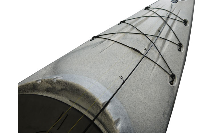 The Reload comes 'Rudder-Ready' with pre-installed rudder line tubing – this makes installation of the optional Viking Rudder kit quick and easy. Molded-in threaded brass inserts can be found at the bow and stern on both side of the hull for easy anchor trolley installation. Five carry handles feature to make carrying the Reload easier and more comfortable, with 1 bow and 2 stern rubber-grip webbing handles, and 2 moulded-in side handles - these provide a firm and solid hold of the kayak at its mid-point for loading onto a roof rack.